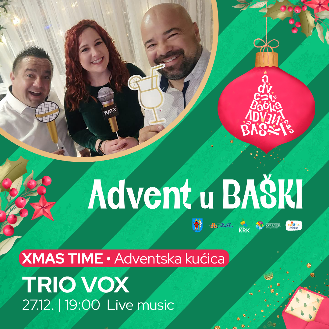 Nakon Božića, blagdanski ugođaj nastavlja se i tijekom sljedećih dana. U petak, 26. prosinca, adventska kućica ponovno oživljava uz večernji glazbeni program DJ Vekyja, stvarajući ugodnu kulisu za zadržavanje, razgovor i uživanje u prosinačnoj večeri. Subota, 27. prosinca, donosi spoj tradicije i večernje zabave - uz božićni boćarski turnir u organizaciji SD "Vihor" kod Doma kulture Baška, večer će obilježiti nastup Trija Vox, čiji će prepoznatljivi repertoar zaokružiti blagdansku atmosferu. Blagdanski vikend zaključuje se u nedjelju, 28. prosinca, tradicionalnim turnirom u briškuli i trešeti u organizaciji BK "Jabuka", koji ostaje vjeran jednostavnom i neformalnom blagdanskom duhu.