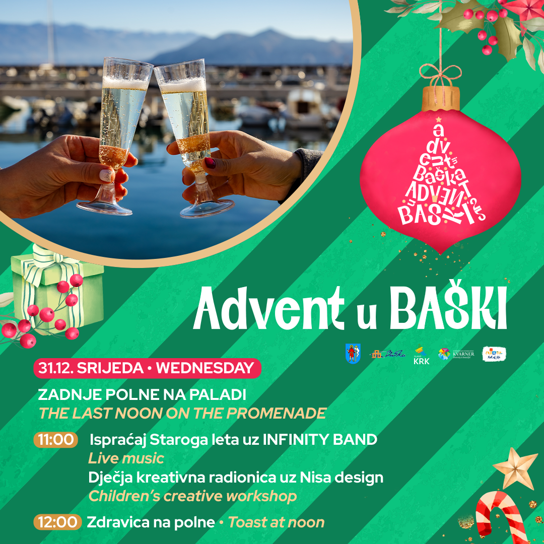Advent u Baški završava veselim i prepoznatljivim okupljanjem "Zadnje polne na Paladi", koje iz godine u godinu privlači sve generacije i stvara poseban blagdanski šušur u središtu mjesta. Posjetitelje očekuje bogat program u kojem se isprepliću glazba, dječja kreativnost i pravo prosinačno raspoloženje.