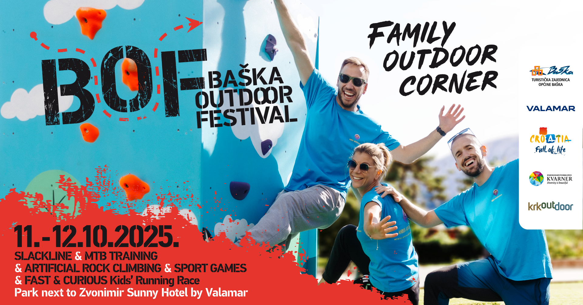 Organiziran kroz partnerstvo Turističke zajednice općine Baška i Valamar Riviere, uz podršku Porto Cluba Baška te brojnih sportskih organizatora, festival je idealna prilika da pobjegnete iz svakodnevice, uživate u spektakularnim pejzažima i iskušate nešto novo. Od ove godine, festivalu se pridružuje i snažna podrška Turističke zajednice Kvarnera kroz projekt Kvarner Outdoor, čime Baška Outdoor Festival postaje još značajniji dio regionalne outdoor ponude.