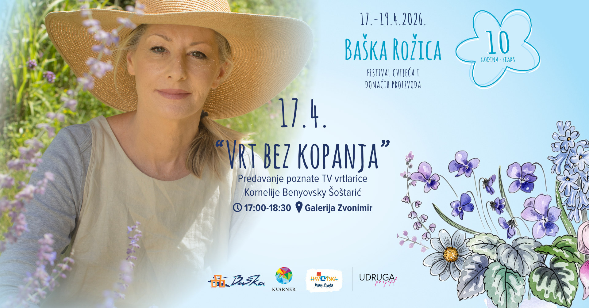 Baška rožica već deset godina njeguje ono najvrijednije, povezanost s prirodom, kreativnost koja spaja ljude i osjećaj zajedništva koji ostaje dugo nakon što se festival završi. Jubilarno izdanje prilika je da zajedno proslavimo sve ono što je kroz godine izraslo, iz male ideje u veliki proljetni doživljaj, koji zajednički organiziraju Turistička zajednica općine Baška i Udruga Projekt.
