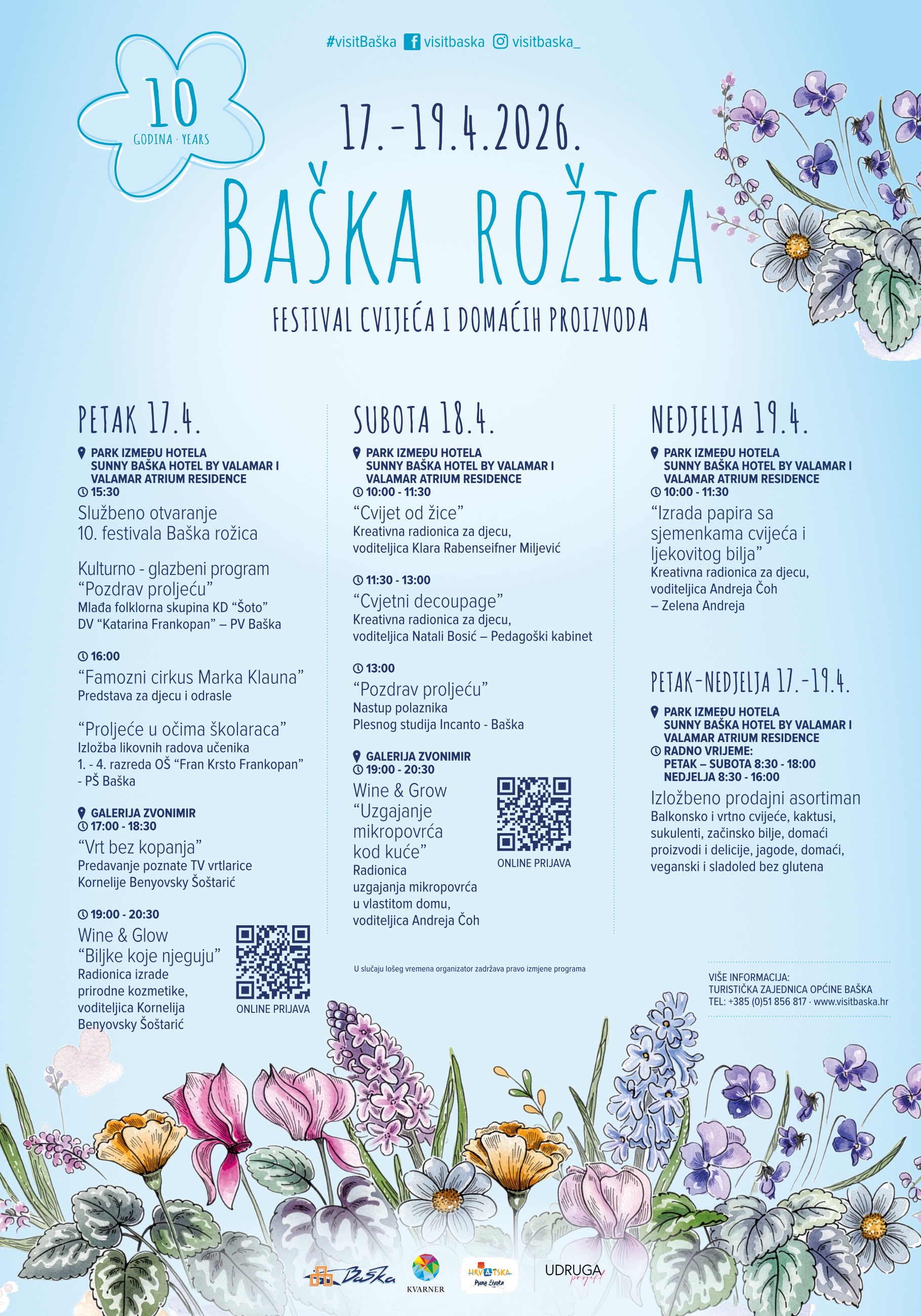 Rezervirajte svoj vikend, povedite obitelj, prijatelje ili jednostavno dođite sami i dopustite da vas Baška inspirira. Za sve dodatne informacije i najave pratite Visit Baška na društvenim mrežama i uključite se u Facebook event Baška rožica 2026.