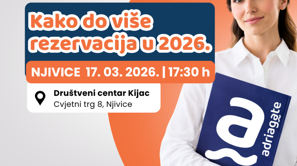 Ovim vas putem pozivamo na edukaciju za iznajmljivače koju organizira Adriagate pod nazivom „Kako do više rezervacija“ u utorak 17. 03. 2026. u 17:30 h, u DC Kijac, na adresi Cvjetni trg 8, Njivice. Predviđeno trajanje edukacije je 1:30 h. Na edukaciji vas očekuju ključne teme potkrijepljene analizama, stvarnim iskustvima gostiju i praktičnim smjernicama za uspješnije poslovanje iznajmljivača.